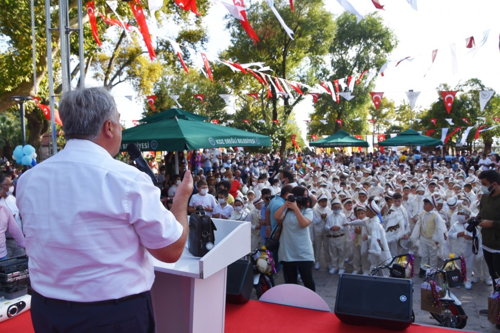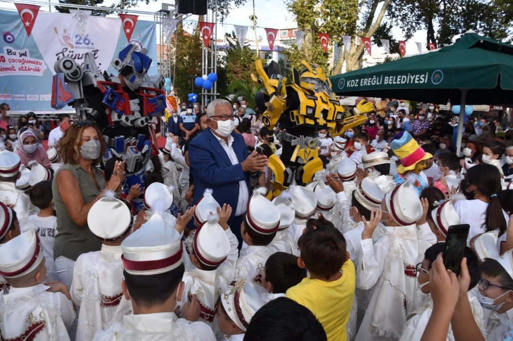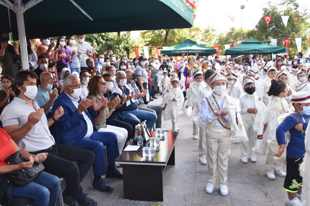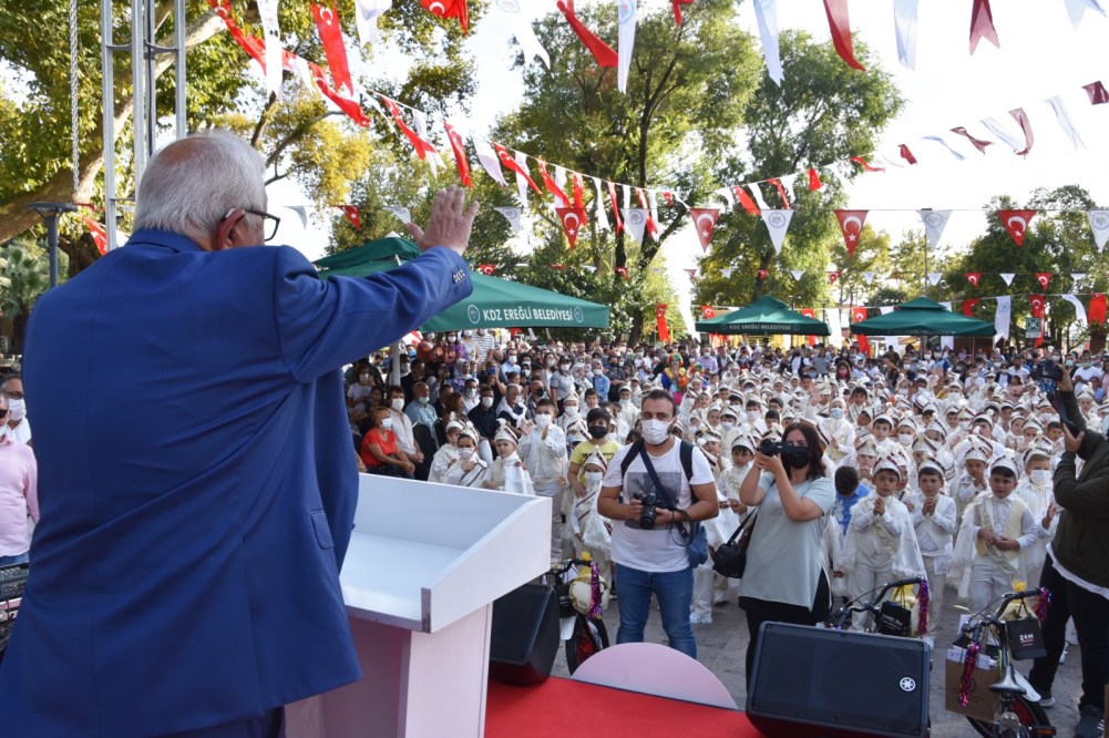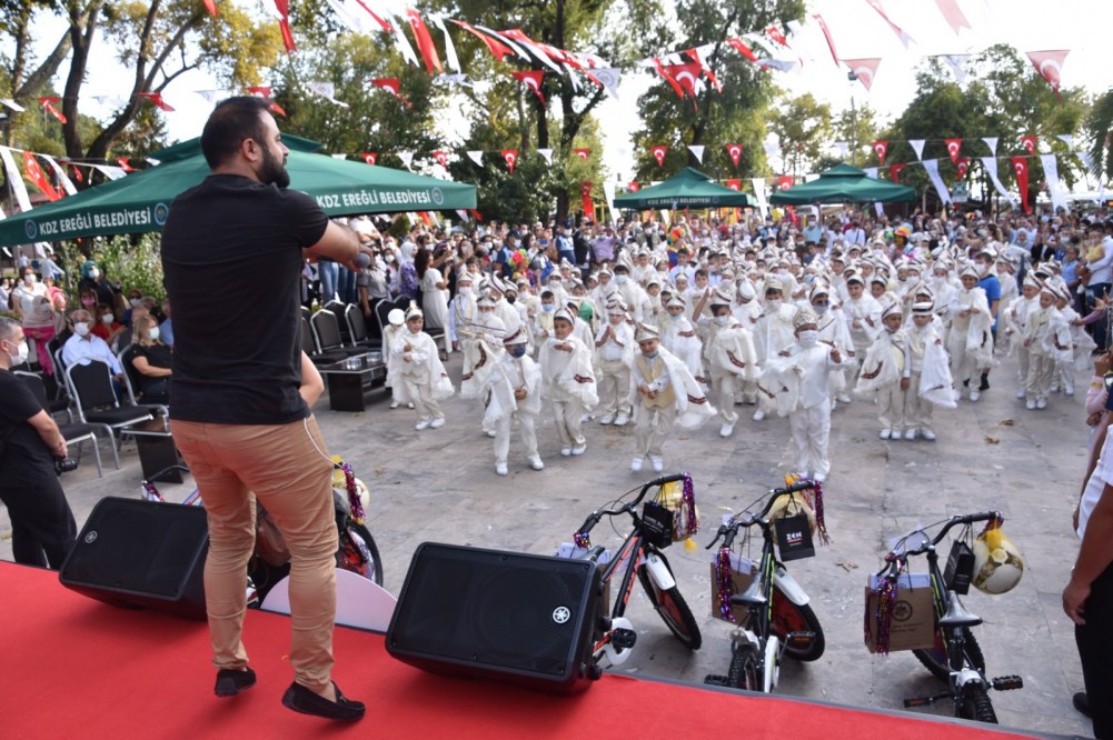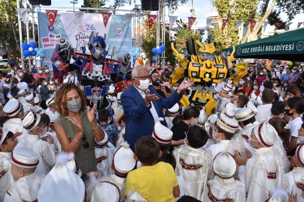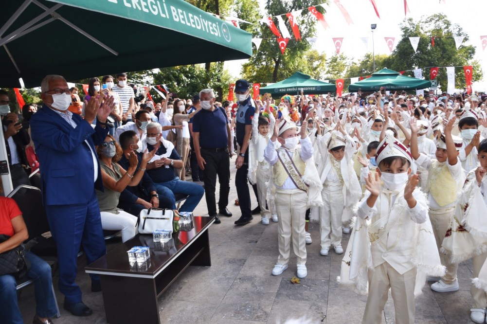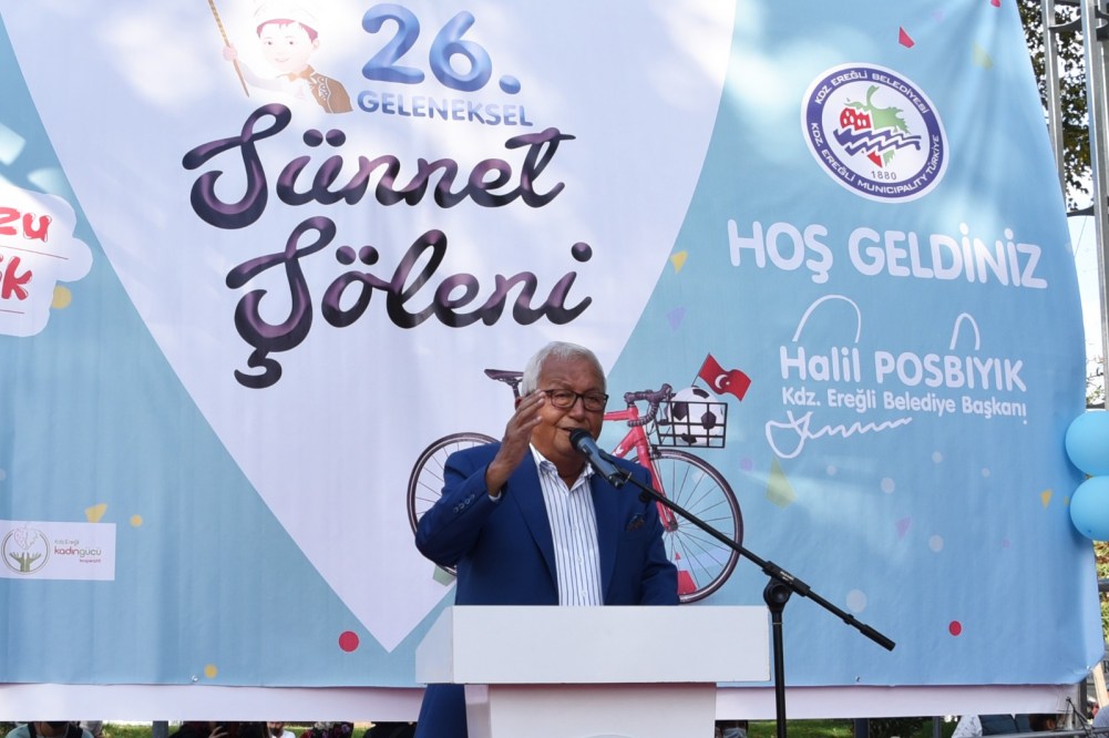 Kdz. Ereğli Belediyesi 26’ncı Geleneksel Sünnet Şöleni yapıldı. Renkli görüntülerin ortaya çıktığı şölende Belediye Başkanı Halil Posbıyık sünnet ettirilen 200 çocuğa bisiklet, top ve saat hediye etti.