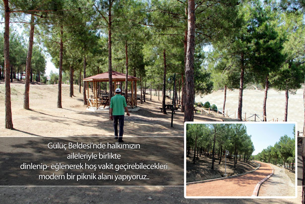 Gülüç için bir diğer projemiz ise modern piknik alanı. Gülüç'te halkımızın gezip dinlenebileceği, aynı zamanda ailecek eğlenebileceği piknik alanı yapıyoruz. Bunun için projelerimizi hazırladık ve 30 Mart 2014 yerel seçimleri sonrası hemen çalışmalara başlıyoruz. Ereğli'de Kestaneci'de yapılan piknik alanını herkes görüyor, beğeniyor. Benzer bir projeyi duayen Belediye Başkanımız Halil Posbıyık'ın da destekleri ile Gülüç'te yapmayı hedefliyoruz.