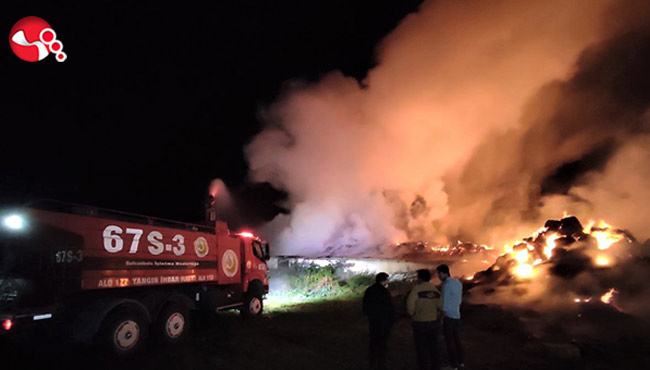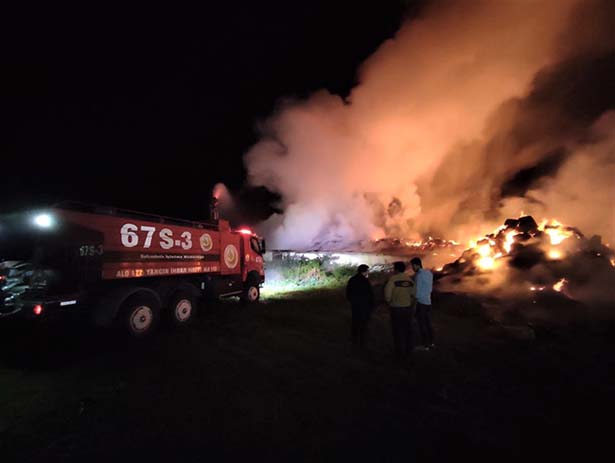 Karabük’ün Safranbolu ilçesinde alevlere teslim olan besi çiftliğinde yaklaşık 80 ton saman zarar gördü.