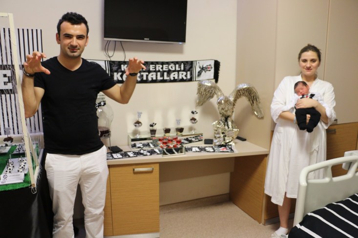 Ereğli' de 4 yıllık evli olan Hatice (30) -Tolga Ataman (30) çiftinin ilk çocukları Egemen, Ereğli Devlet hastanesinde dünyaya geldi. Koyu Beşiktaş taraftarı olan Anne Hatice ve Baba Tolga Ataman, çocukları için hastane odasını Beşiktaş mabedine çevirdi. Kartal heykelleri, küçük kale, krampon, Beşiktaş afişleri, atkılarla süslenen odada gelen misafirler Beşiktaş marşları ile karşılandı.