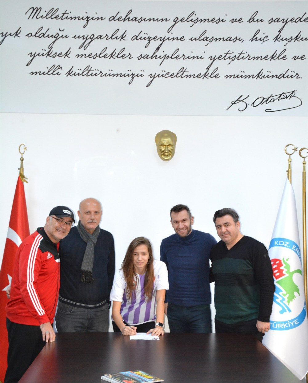 İmza töreninde Kdz. Ereğli Belediyespor As Başkanı Satılmış Yigit, Sertan Kuzu, yönetim kurulu üyesi ve Kulüp Saymanı Recep Köksal ve Kadın futbol Takımı Antrenörü Faruk Varlık hazır bulundu.