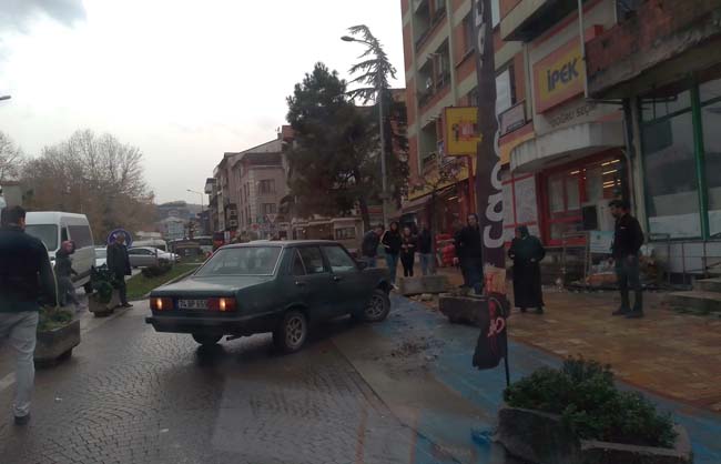 Edinilen bilgiye göre, şehir merkezinde İstasyon rampasından aşağıya seyreden T.S. idaresindeki 74 BP 659 plakalı otomobil, sürücüsünün direksiyon hakimiyetini kaybetmesi sonucu yoldan çıktı. Markete girmesine ramak kala otomobil saksılara çarparak durabildi. Meydana gelen kazada maddi hasar oluştu.