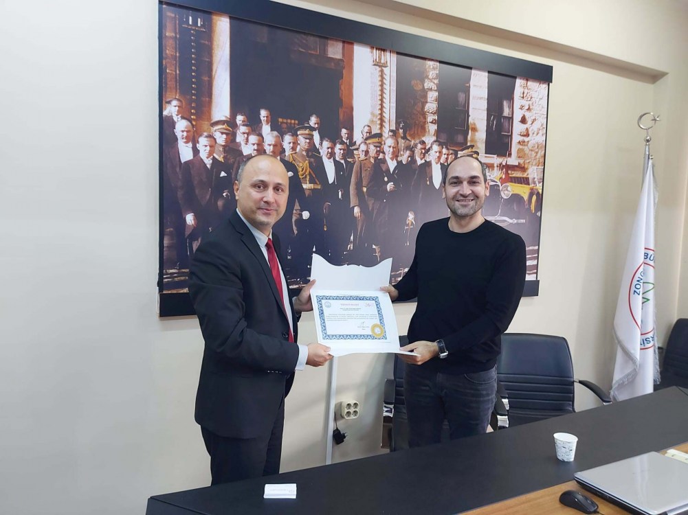Toplantı sonunda Ereğli Eğitim Fakültesi Dekanı Prof. Dr. Soner Yavuz bilgilendirmeden duyduğu memnuniyeti ifade ederek Dr. Öğr. Üyesi Soner Sözler’e teşekkür belgesi takdim etti.