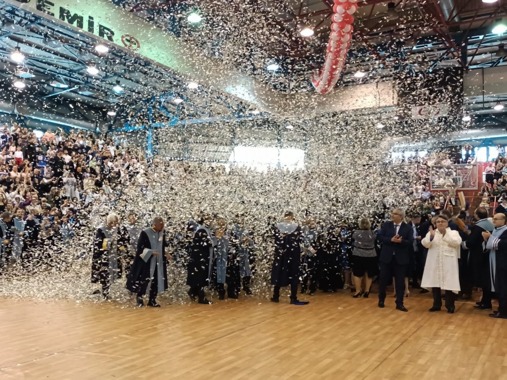 Tören, diplomalarını alan öğrencilerin coşkuyla keplerini atması ve fotoğraf çekimi ile sona erdi.