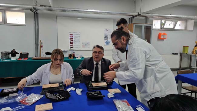 BEÜ Rektörü Prof. Dr. İsmail Hakkı Özölçer, laboratuvarın öğrencilere gerçek hayvanlar yerine maketler üzerinde beceri kazandırma amacını taşıdığını vurguladı. Özölçer, "Laborant ve Veteriner Sağlık Teknikerliği programının alt bünyesinde yer alan Klinik Beceriler Laboratuvarı'ndayız. Burada Türkiye'de ilk defa Çaycuma Gıda Tarım Meslek Yüksekokulu'nda açılmış bir laboratuvar. Öğrencilere gerçek hayvanlar üzerinde değil de maket üzerinde klinik beceriler kazandırabilmek amacıyla açılmış bir laboratuvar. Hayvan maketlerimiz var. Hayvanların doğum yapmasından, kalp masajı yapılmasına, hayvanlarına dikiş atılmasına, entübasyon yapılmasına kadar pek çok beceri burada maketler üzerinde öğrencilere Türkiye'de ilk olmak üzere bir laboratuvar hizmetiyle verilmeye çalışılıyor. Hem burada öğrenciler klinik beceriler elde ediyor hem de gerçek hayvanlar üzerinde çalışma yapılmıyor. Biz burada maketler üzerinde çalışıyoruz ama birebir gerçek beceriler öğrencilerin elde etmesini sağlıyoruz" ifadelerine yer verdi.