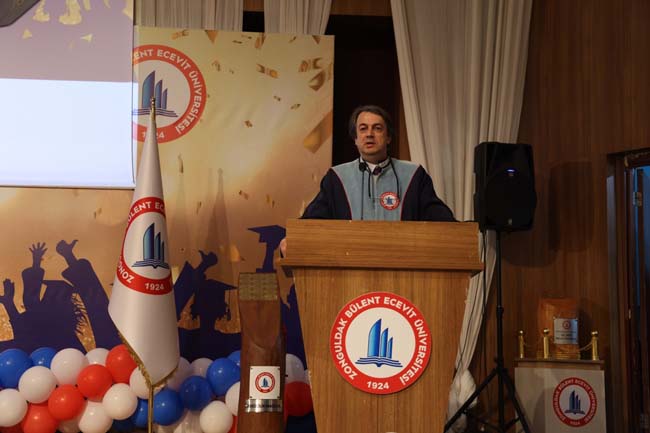 Açılış konuşmasını gerçekleştiren Ereğli Eğitim Fakültesi Dekanı Prof. Dr. Ali Azar, fakülte olarak çok kıymetli mezunlar yetiştirmeye büyük önem verdiklerini, buradan mezun olarak öğrencilerin Türkiye’nin geleceğini, eğitim altyapısını kuracak şekilde akademik ve etik kodlarla donatıldığını belirtti. Mezunların yetişmesinde, fakültenin olanaklarını geliştirmede ve mezuniyet töreninde sunmuş olduğu katkılardan dolayı BEUN Rektörü Prof. Dr. İsmail Hakkı Özölçer’e teşekkürlerini sunan Prof. Dr. Azar, mezunların yetişmesindeki katkılarından dolayı da akademisyenlere teşekkürlerini sundu. Öğrencilerin ailelerine de teşekkürlerini sunan Prof. Dr. Azar, mezuniyetin tüm öğrenciler ve Türkiye için hayırlara vesile olmasını temenni ederek konuşmasını sonlandırdı.