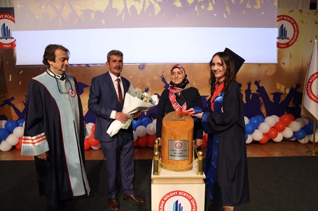 Birincilerin konuşmalarının ardından, mezuniyet töreni protokol üyelerinin, fakülte ve meslek yüksekokulunu dereceyle bitirenlere ödül ve başarı belgesi takdimiyle devam etti. Birincilikle mezun olan öğrencilerin adları protokol üyeleri ve ailelerle birlikte kütüğe isimlerinin yazdığı başarı plakasının çakılmasıyla devam ederken, ardından ise mezuniyet yemini gerçekleştirildi. Mezunların yemin etmesinin ardından kep atma törenine geçilirken büyük coşkuyla gerçekleştirilen tören, hatıra fotoğrafı çekilmesiyle sona erdi.