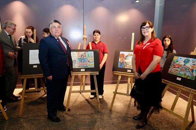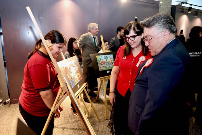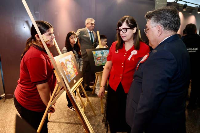 Program öncesinde öğrencilerin hazırladığı 23 Nisan temalı resimlerden ve yarışmalarda dereceye giren eserlerden oluşan sergi açılışları yapılarak, gezildi. Protokol üyeleri, eserler hakkında öğretmenlerden bilgi alırken, öğrencilerin çalışmalarını ilgiyle inceledi.