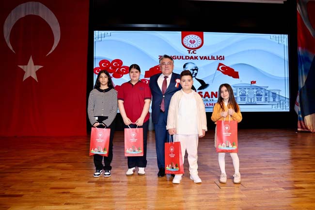 Zonguldak İl Millî Eğitim Müdürü Uygar Keskin’in günün anlam ve önemine ilişkin konuşmasının ardından sahneye çıkan öğrenciler, okudukları şiirlerle bayram coşkusunu salona taşıdı. Vatan Marşı eşliğinde gerçekleştirilen bayrak gösterisi ve 23 Nisan temalı müzik dinletisi izleyicilerden büyük alkış aldı.