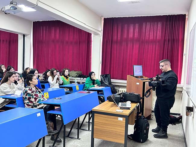 İHA Zonguldak İl Temsilcisi Onur Altındağ, Zonguldak Bülent Ecevit Üniversitesi İletişim Fakültesi'nde öğrencilerle bir araya gelerek deneyimlerini paylaştı.