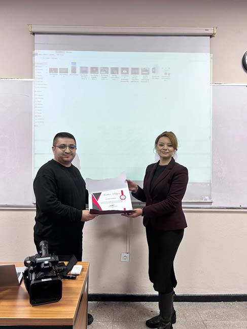 Yaklaşık iki saat süren söyleşinin sonunda Dekan Yardımcısı Doç. Dr. Tuğba Akdal, Onur Altındağ'a katkılarından dolayı teşekkür belgesi takdim etti. Etkinlik, iletişim fakültesi öğrencileri ve Altındağ'ın hatıra fotoğraf çekimiyle sona erdi.