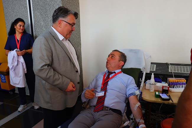Zonguldak Bülent Ecevit Üniversitesi Rektörü Prof. Dr. İsmail Hakkı Özölçer, BEUN Hastanesinde düzenlenen Ulusal Kan Bağışı Seferberliği'ne destek verdi.
