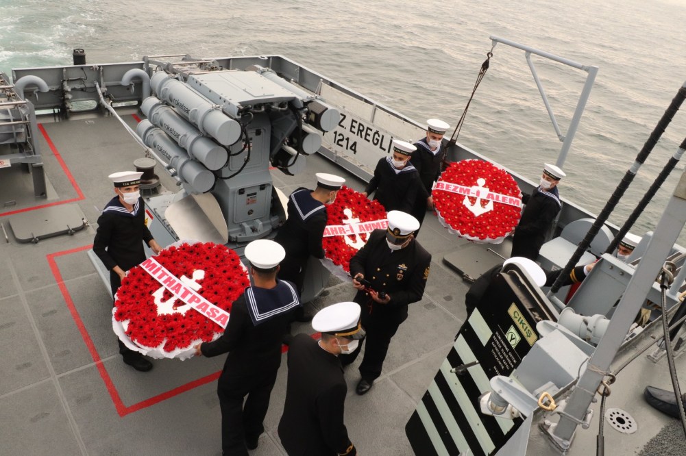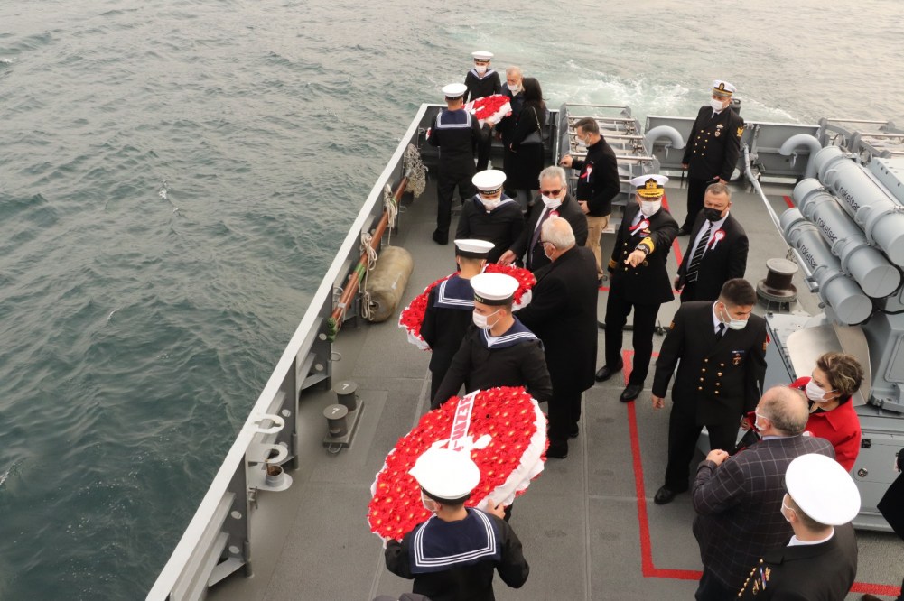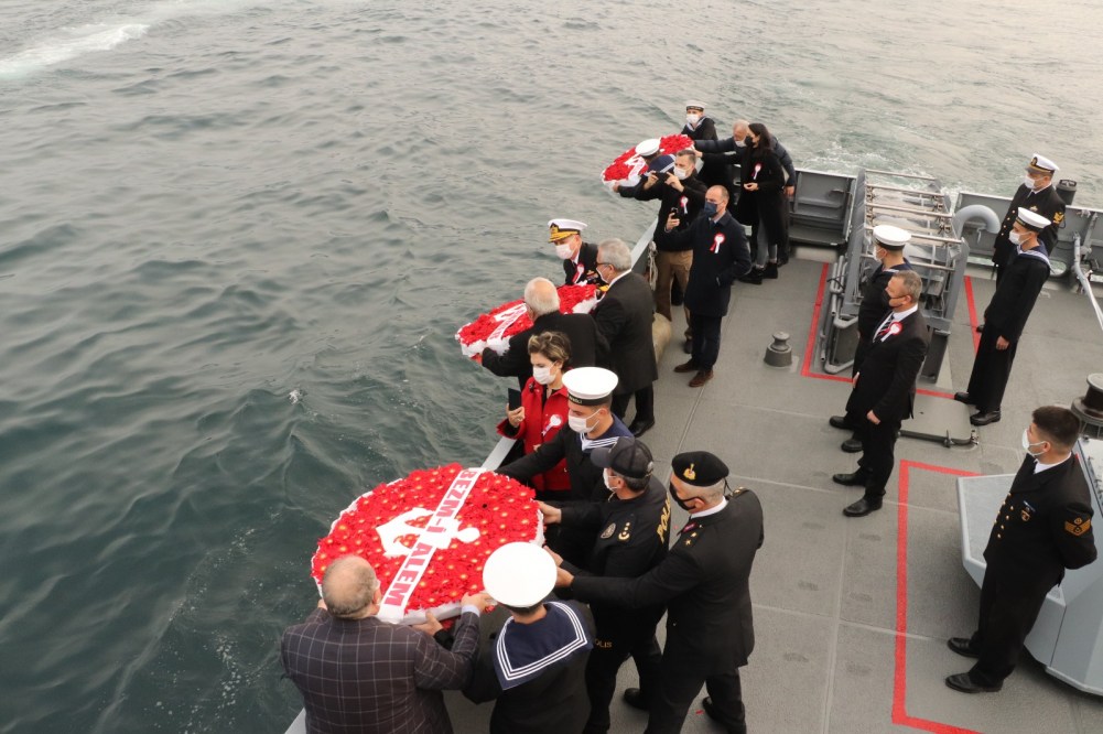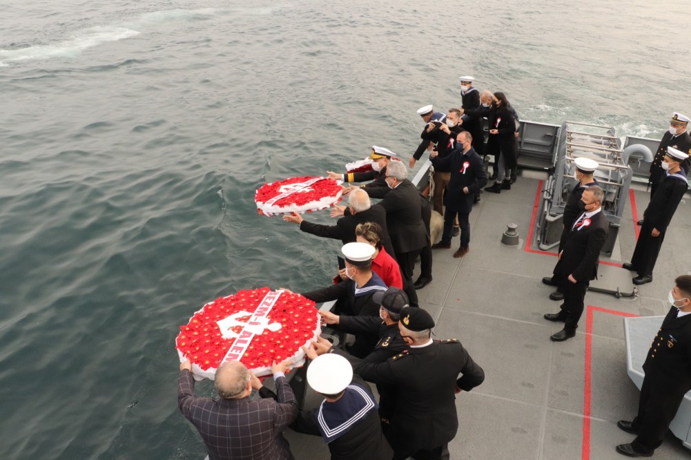 Tören sonunda T.C.G. Karadeniz Ereğli Karakol gemisi denize 3 Gemi anısına 3 Çelenk bırakıldı, Karadeniz Bölge Komutanlığı'na ait bir bot siren çaldı.
