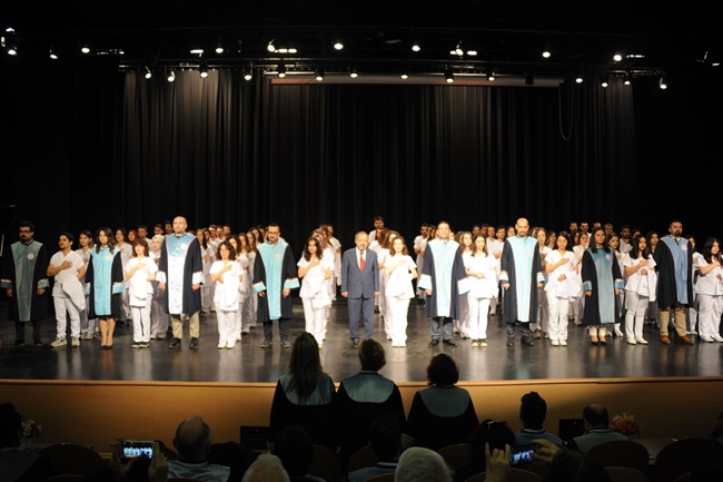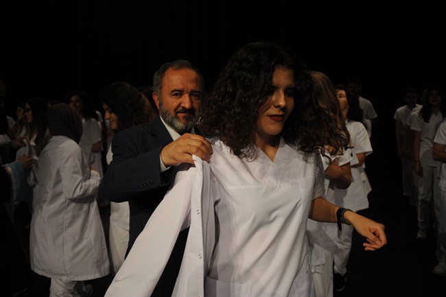 Konuşmaların ardından onur belgesi almaya hak kazanan öğrencilere protokol tarafından belgeleri verildi. Bu yıl altıncısı gerçekleştirilen beyaz önlük giyme töreni, öğrencilerin Ağız Diş ve Çene Cerrahisi Anabilim Dalı Başkanı Doç. Dr. Mustafa Cenk Durmuşlar eşliğinde yemin etmesinin ardından Rektör Prof. Dr. Mustafa Çufalı öncülüğünde Diş Hekimliği Fakültesi Dekanı ve öğretim üyeleri tarafından öğrencilere beyaz önlüklerinin giydirilmesiyle son buldu.
