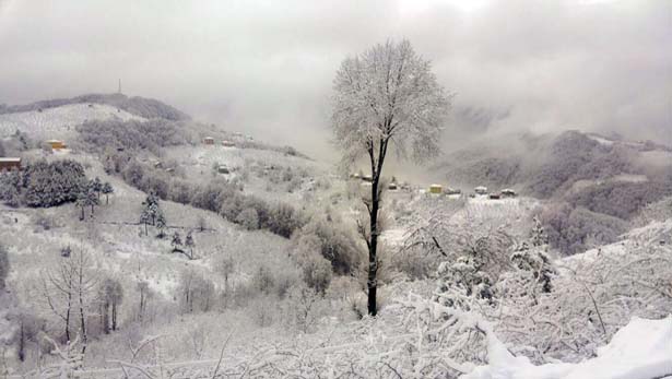 Zonguldak'ın yüksek kesimleri olan Bacaklı yayla ve Gümeli beldesinin tepeleri beyaza büründü.