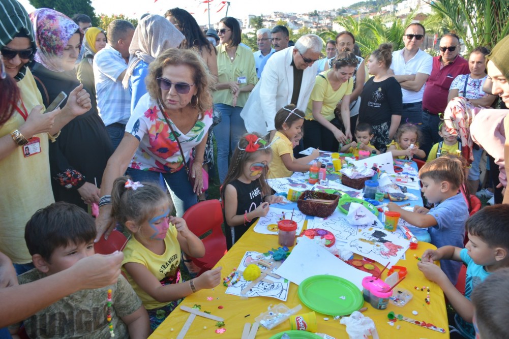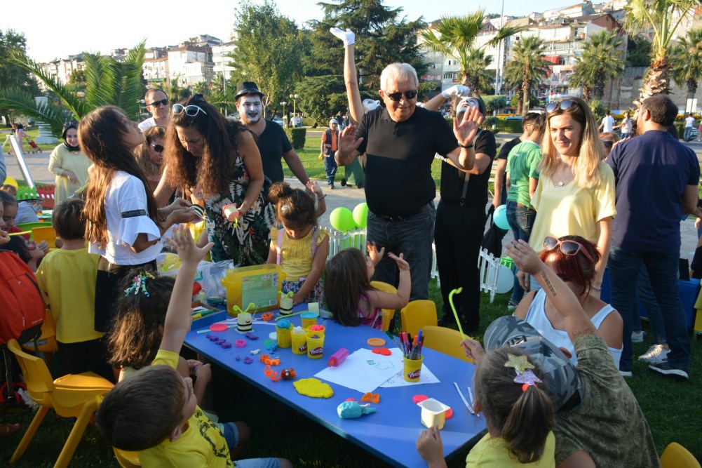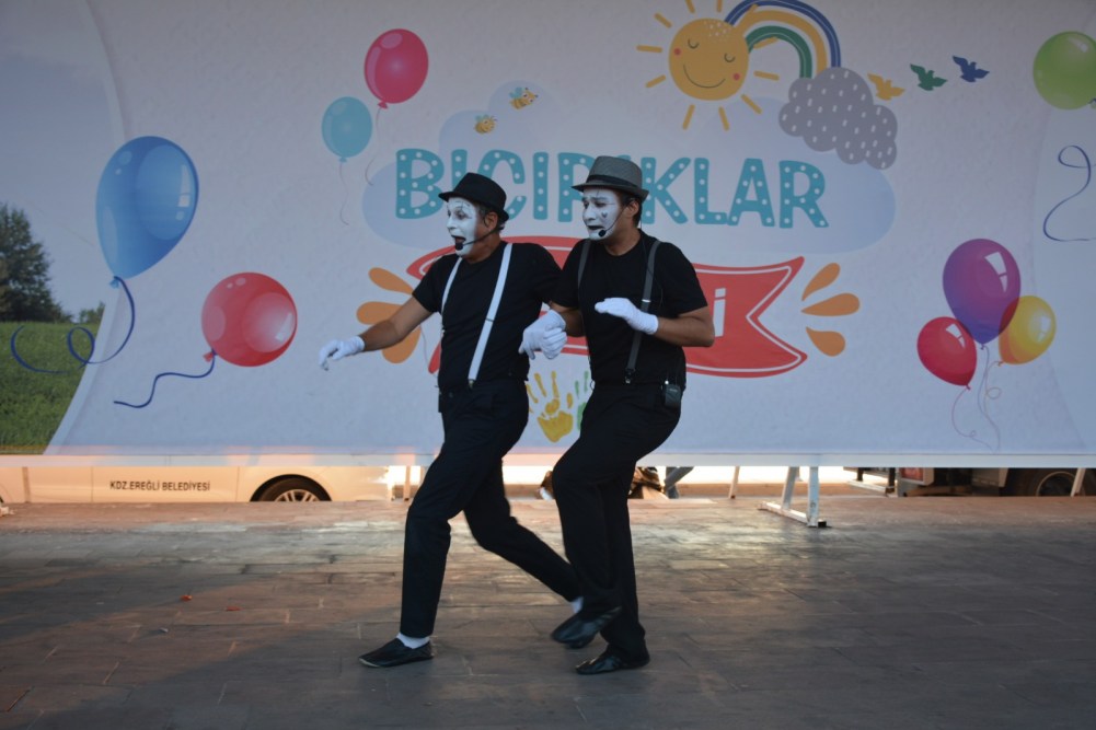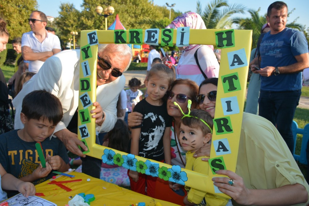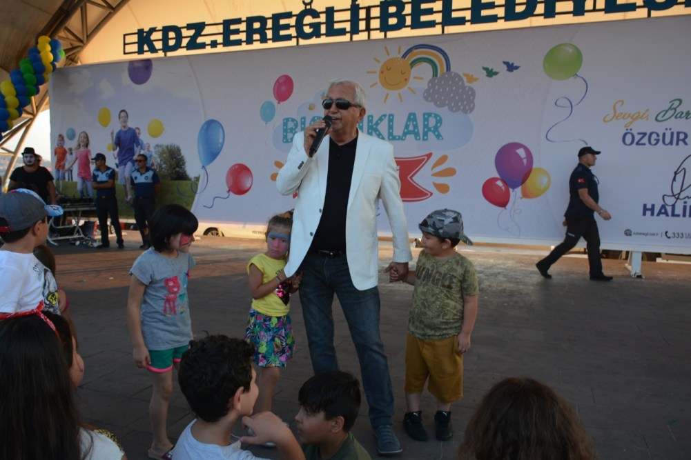 Amfi Tiyatro ve çevresindeki çimlik alan, Ereğli'nin renkleri olan yeşil mavi sarılar giymiş bıcırıkların atölye çalışmaları, şarkıları ve danslarıyla cıvıl cıvıl oldu. Kreşlerde olmayan çocukların da aileleriyle birlikte katıldıkları şenlikte Belediye Başkanı Halil Posbıyık eşi Neriman Posbıyık kızı Tuba Posbıyık Urcu ve torunlarıyla birlikte atölyeleri gezdi, çocuklarla birlikte eğlenceli dakikalar geçirdi.