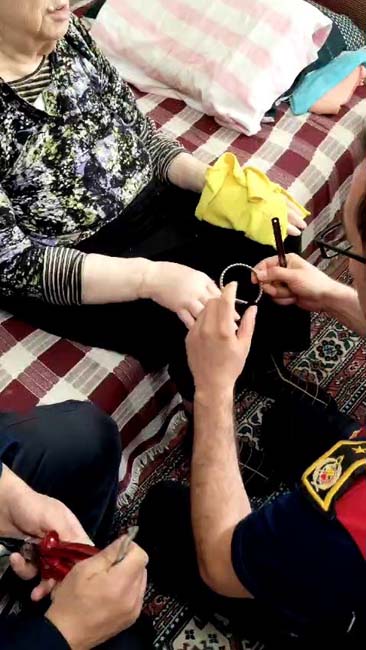 Müyesser Ş., bileziğini bileğinden çıkartan ekiplere teşekkür etti. Ekipler de operasyonun tamamlanmasının ardından evden ayrıldı.