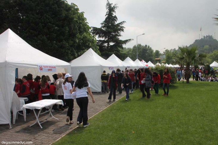 bilimsel çalışmaları sergilerken, şenliği gezen öğrenciler de çalışmaları