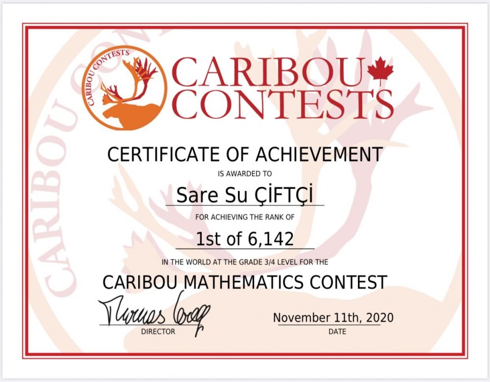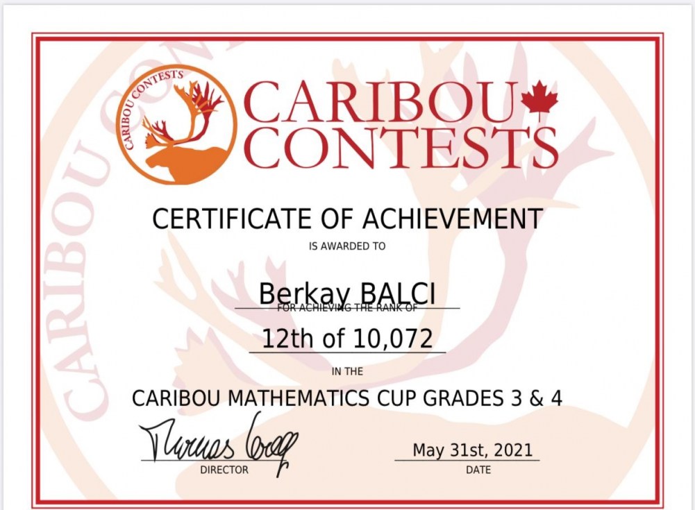 Carıbou Contest Matematik yarışması toplamda 6 aşamadan oluştu. Yarışmanın birinci aşamasında üçüncü sınıf öğrencimiz Berkay Balcı, Dünya 1.liği;