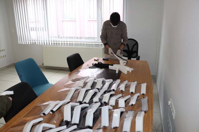 Bilim ve Sanat Merkezini ziyaret eden Ereğli Kaymakamı İsmail Çorumluoğlu, Okul Müdürü Serkan Çakır’dan maskelerin imalatı ve çalışmaları hakkında bilgi aldı. Serkan Çakır verdiği bilgilerde “Yüz koruma maskesi şu anda seri şekilde imal ediliyor. Bunun maliyeti 75 kuruş civarında. Normal maskenin üretimine de şu anda 7 adet 3D yazıcı ile devam ediliyor. Diğer okullardan gelecek olan yazıcılar ile birlikte üretim sayısını arttıracağız” dedi.