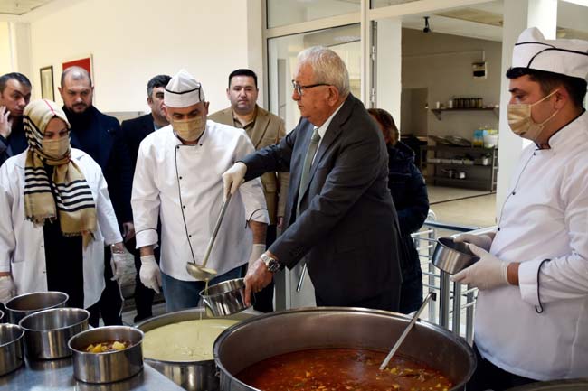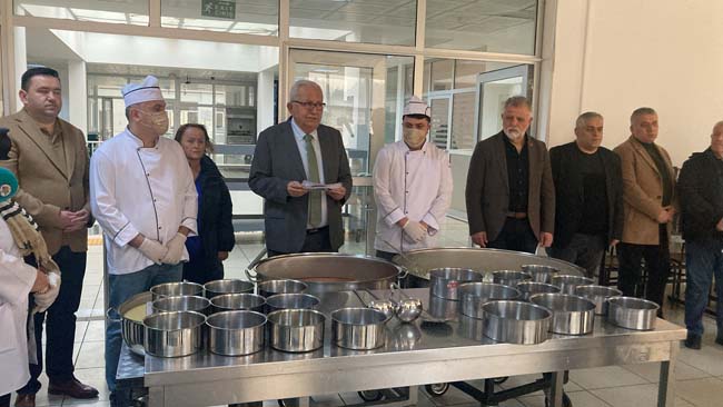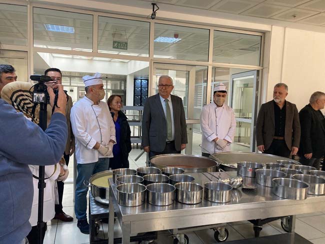 Bugün menümüzde çorba, tas kebabı, pirinç pilavı var. Menülerimiz zengin, her gün değişiyor. Vatandaşlarımızdan da destek geliyor. Bazıları pirinç, nohut kuru gıda yardımında bulunuyor, bazıları da nakit yardımı yapıyor. Zekat, fitre yardımlarını belediyeye yardım ediyor. Zaten hayır sahibi insanların en doğru yardımı belediye vasıtasıyla yapacağını bugüne kadar ispatladık. Hatta hatta vatandaşlarımızdan tatlı, meyve yardımı da geliyor. Haftada bir defa menüye ilave tatlı ve meyve vermek için gayret gösteriyoruz.