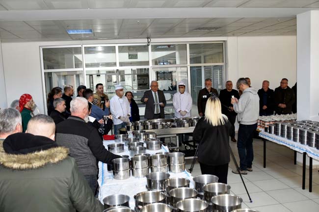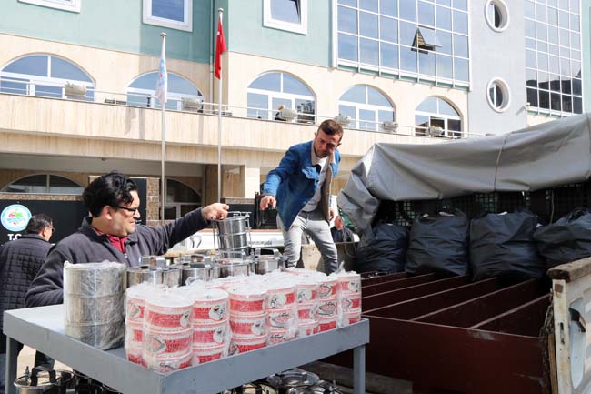 Neden sefer taslarıyla evlere yemek gönderiyoruz. Hep anlatırım, geçmişte de anlattım. Zaman zaman aileleri ziyaret ediyorum. Potbaşında bir dere kenarında hiç unutmuyorum bir aileyi ziyaret ettim. Dere kenarında bir eve girdim. Kadının 3 tane çocuğu var, yerde kilimi dahi yok. Çok garibanlar. Onlara dedim ki, bu yemekleri böyle evlere getirmek mi doğru yoksa bir çadır kursam şehir merkezinde oraya siz gelseniz dedim. ‘Napıyon başkan dedi. 3 çocuk birde ben yol parası giderken gelirken vereceğiz. Zaten o para olsa biz evde peynir zeytin yeriz’ dedi. O zamandan beri ihtiyaç sahibi insanların ayaklarına gitmemiz gerektiğine inandığım için 26 senedir evlere sıcak aş ulaştırmaya devam ediyoruz. 4 araç, mutfak personeli ve dağıtım ekibi olarak 40 kişilik bir ekip kurduk.