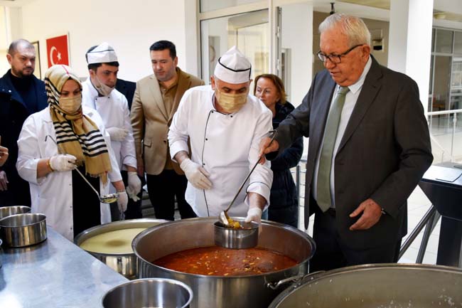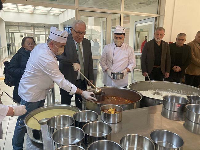 Belediye Başkanı Halil Posbıyık, göreve geldiği 1994 yılından itibaren her Ramazan ayında geleneksel hale getirdiği ihtiyaç sahiplerinin evlerine sıcak aş uygulamasının startını, bu Ramazan ayında da belediye yemekhanesinde verdi. Belediye başkan yardımcıları, CHP ve AK Parti belediye meclis üyeleri ve daire müdürlerinin katılımıyla sefer taslarını bol kepçe dolduran Başkan Posbıyık, “Ramazan ayı boyunca ihtiyacı olan tüm ihtiyaç sahiplerinin sofrasında olacağız” dedi.