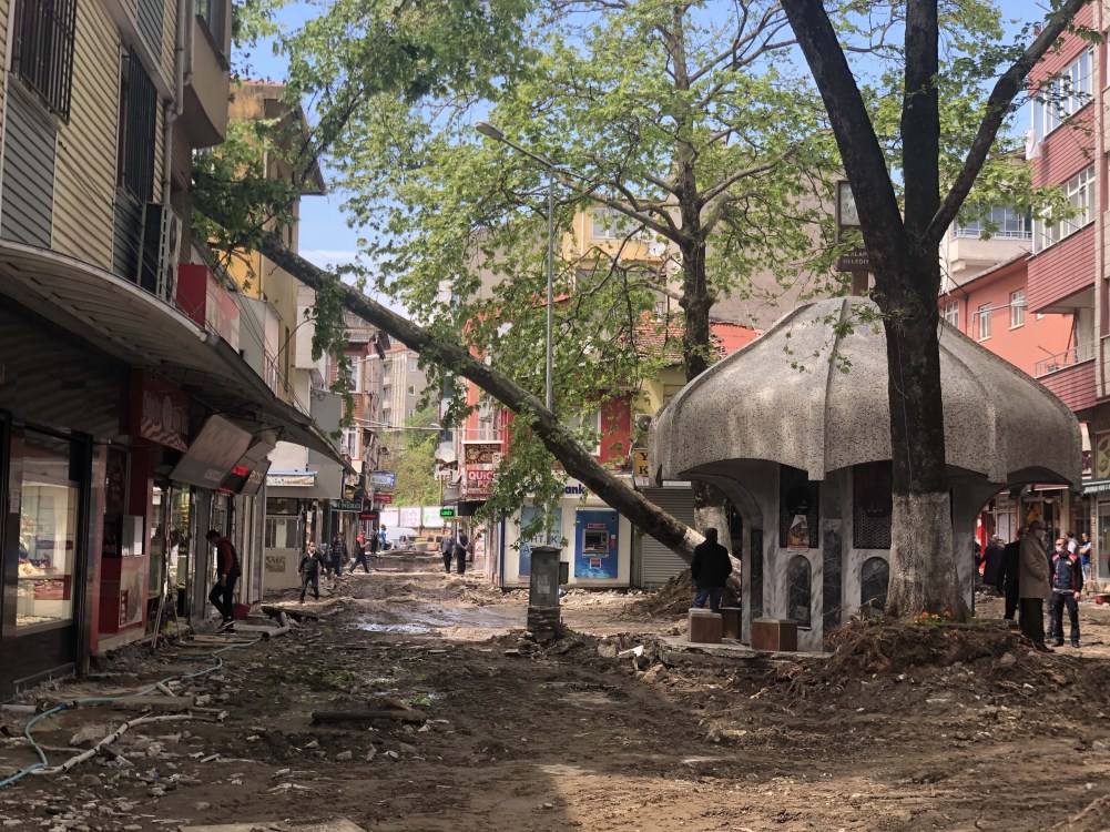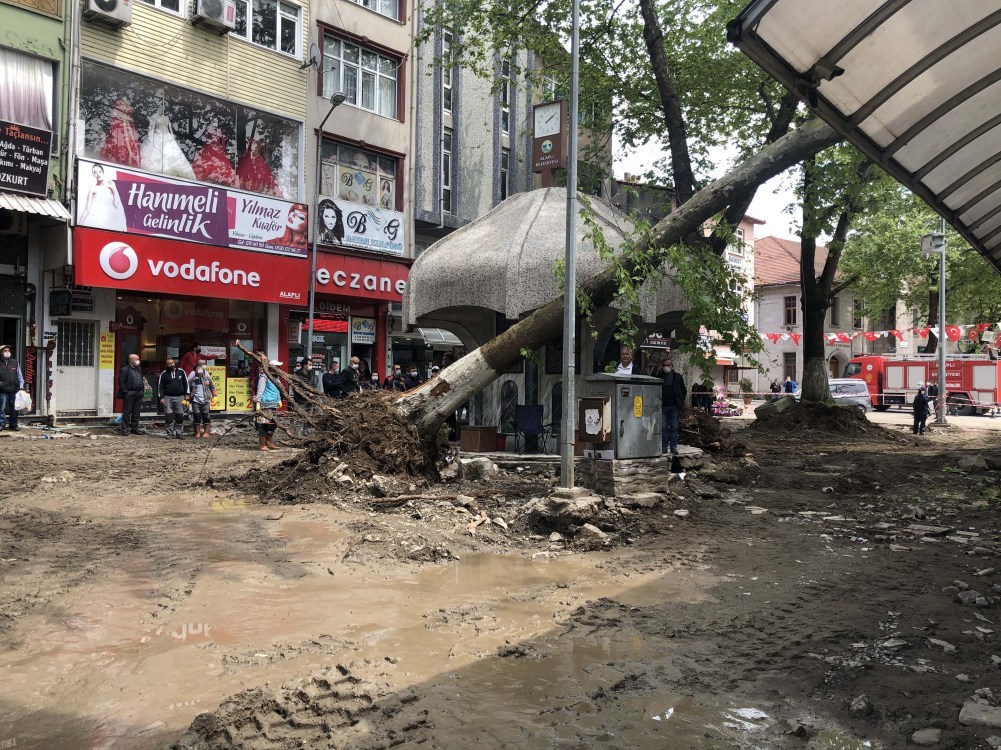 Alaplı Belediyesi tarafından Cumhuriyet Caddesi üzerinde başlatılan kaldırım yenileme ve yol kaplama çalışmaları sırasında, köklerinin zayıflamasına daha fazla dayanamayan çınar ağacının, şans eseri binanın üzerine yavaş yavaş devrilmesi ile birlikte faciayı önlendi. Tonlarca ağırlığındaki ağacın devrildiğini gören vatandaşlar da hemen itfaiye ekiplerine haber verdi. Ölen ya da yaralanın olmadığı olay sonrası çevreden geçen vatandaşlar; diğer ağaçların da tehlike oluşturabileceğini ifade ederek tepki gösterdiler. Olay sonrası bölgeye gelen belediye ekipleri cadde üzerindeki diğer ağaçları korumaya aldı. Binanın üzerine yıkılan çınar ağacı itfaiye ekipleri tarafından parçalara ayrılarak kaldırıldı.