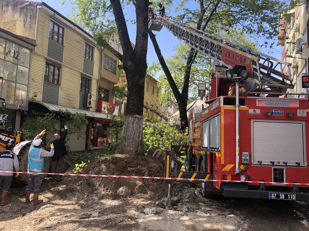 Zonguldak'ın Alaplı ilçesinde yol düzenleme çalışması sırasında kökleri zayıflayan bir çınar ağacı binanın üzerine devrildi. Olay sırasında binanın önünden geçen iki kişi şans eseri yara almadan kurtuldu.