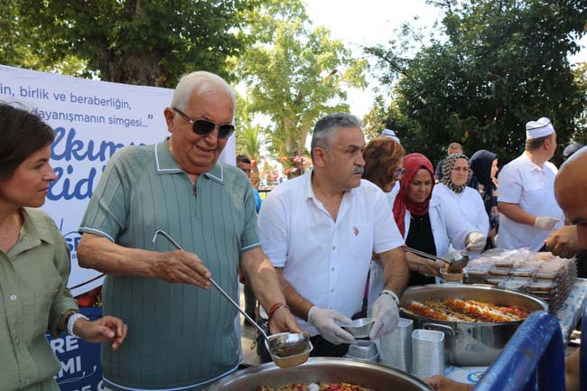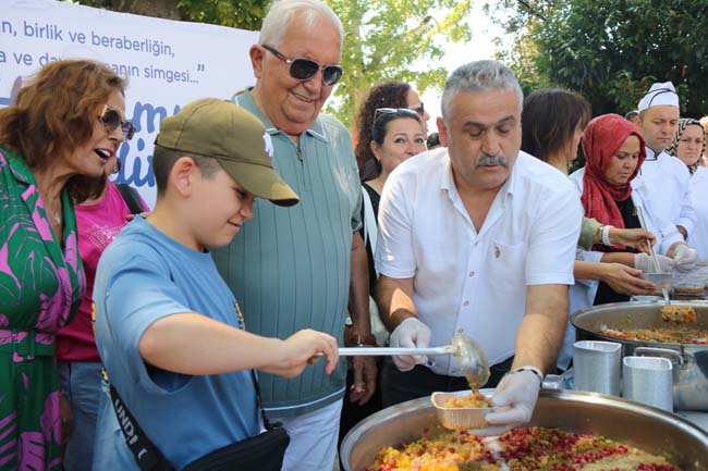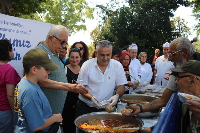 Başkan Posbıyık’ın konuşmasının ardından din görevlileri, günün önemine binaen dua etti. Başkan Posbıyık, eşi Neriman Posbıyık ve torunu Mehmet Duhan Urcu ile meclis üyeleri ve başkan yardımcıları kazanların başına geçerek vatandaşlara aşure servisi yaptı. Aşureleri alan vatandaşlar Başkan Posbıyık’a ‘Allah kabul etsin’ diyerek teşekkür ettiler.