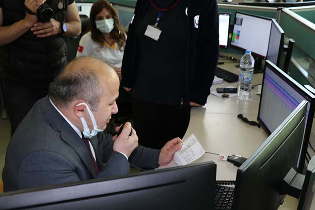 Öte yandan İl Sağlık Müdürü Dr. Ertuğrul Güner de bayram dolayısıyla acil çağrı merkezine gelerek sağlık çalışanlarının bayramını kutladı. Çağrı merkezi personeline çikolata ikram eden Güner, telsiz aracılığıyla sahada görev yapan sağlık çalışanlarının da bayramını kutladı.