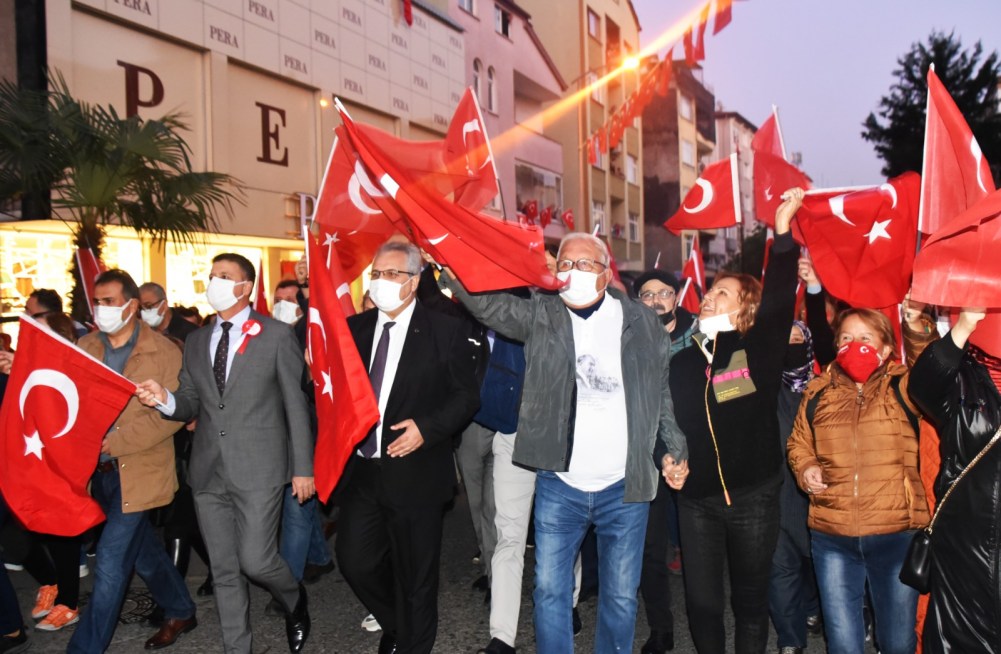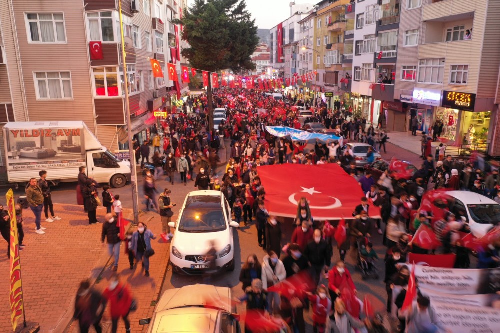 Kdz.Ereğli'de 29 Ekim Cumhuriyet Bayramı’nda düzenlenen “Cumhuriyet Yürüyüşü”nde sokaklar insan seline döndü, binlerce vatandaş “Yaşasın Cumhuriyet” dedi.