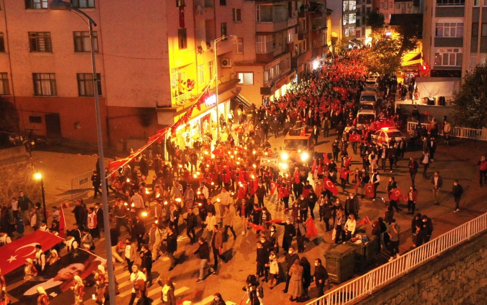 Bağlık Polis Merkezi önünde toplanan Kdz. Ereğlililer Devrim Bulvarı'ndaki Atatürk Anıtı önüne kadar yürüdü. Kaymakam Mehmet Yapıcı, CHP Zonguldak Milletvekili Ünal Demirtaş, Karadeniz Bölge ve Garnizon Komutanı Tuğamiral Niyazi Uğur, Belediye Başkanı Halil Posbıyık ve eşi Neriman Posbıyık, siyasi parti ilçe başkanları ve kent protokolünün diğer üyelerinin katıldığı kortejde binlerce vatandaş ellerinde Türk Bayrağı ve Atatürk posterleriyle marşlar eşliğinde hep bir ağızdan “Yaşasın Cumhuriyet, Yaşasın Atatürk” dedi.