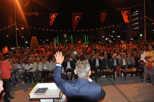 Darbe girişiminin 10.gecesinde alanlardaki vatandaşlara seslenen Büyük Birlik Partisi İlçe Başkanı Turabi Çelik, Saadet Partisi İlçe Başkanı Musa Kumaş ve AK Parti İlçe Başkanı Fatih Çakır, demokrasi nöbetlerini 2. bir emre kadar sürdüreceklerini açıkladılar.