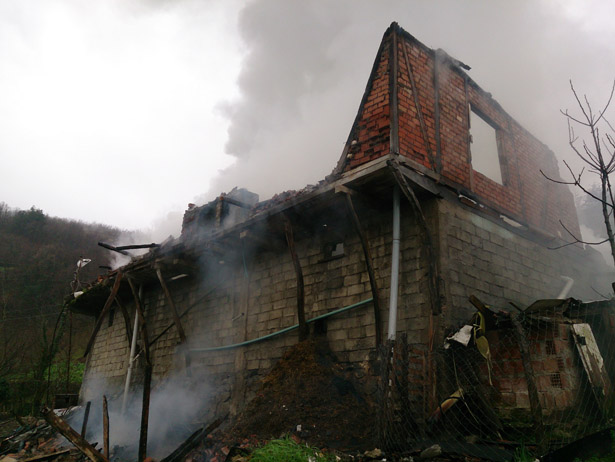 bulunan eşyaları tutuşturunca alevler kısa sürede evi sardı. Kendi çabalarıyla