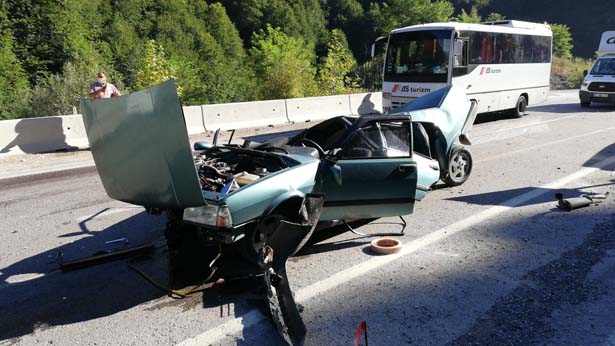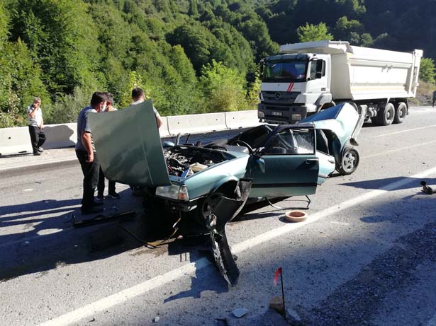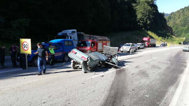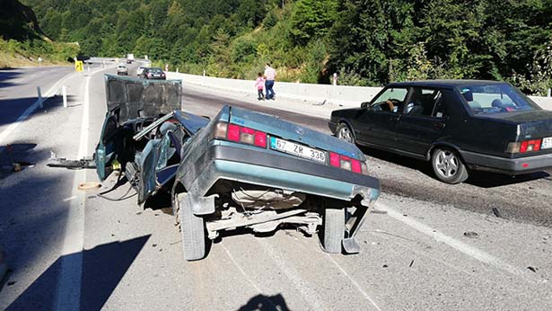 Edinilen bilgiye göre kaza, sabah saatlerinde Zonguldak Ankara Karayolu Çaycuma yolu üzerinde meydana geldi. Ercan Karabacak idaresindeki 67 ZR 336 plakalı araç sürücüsü, direksiyon hakimiyetini kaybederek yolun sağında bulunan beton bloklara çarptı. Çarpmanın etkisiyle ikiye ayrılan araç hurdaya döndü. Kazada araç içinde bulunan 2’si çocuk 4 kişi yaralandı.