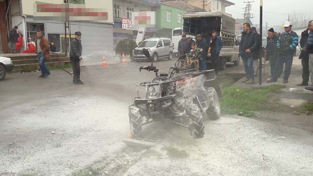 Olay ilçeye bağlı Subaşı köyünde meydana geldi. Alınan bilgilere göre bakım için tamirciye getirilen ATV, bir anda alevler içinde kaldı. Yangını söndürmek için çevredeki vatandaşlar su ve yangın tüpü ile müdahale etmeye çalıştı. ATV' de başlayan yangın kısa sürede söndürüldü. Yangının ardından ATV kullanılamaz hale geldi. Olayda yaralanan olmazken, ATV'nin sahibi aracını kamyonete yükleyerek olay yerinden götürdü.