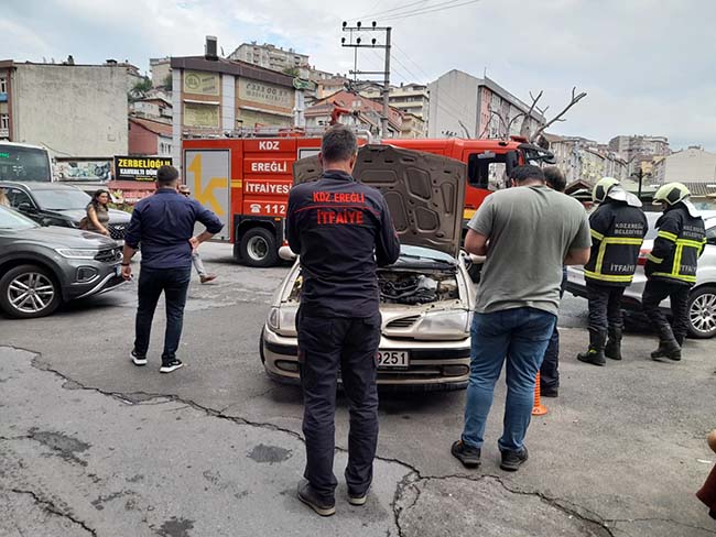 Zonguldak'ın Ereğli ilçesinde seyir halindeki otomobilden çıkan dumanlar paniğe neden oldu.
