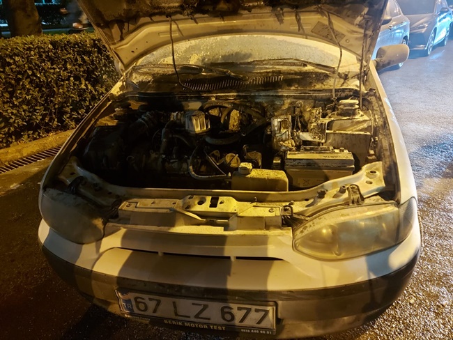 Bir anda aracının motor kısmından dumanlar yükseldiğini fark eden sürücü, durumu “112 İhbar” hattına bildirdi.