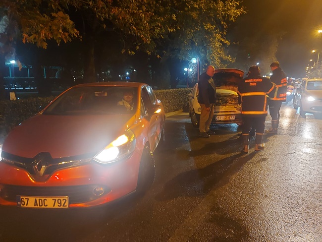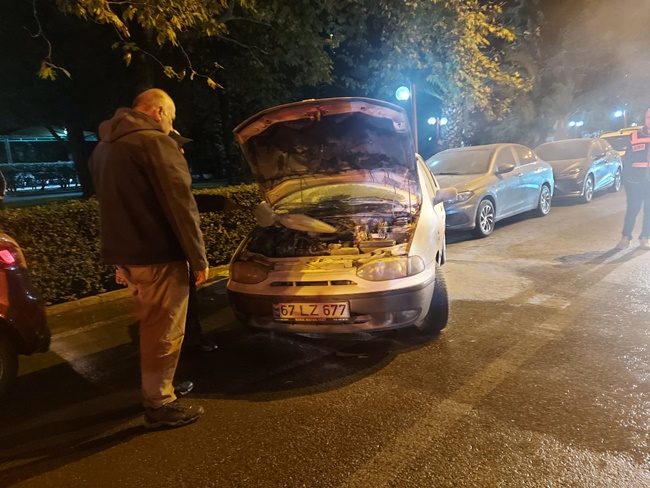 Zonguldak’ın Ereğli ilçesinde, park halindeki otomobilin motor kısmında yangın meydana geldi.