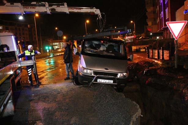 Olay ilçeye bağlı Sarıkorkmaz Mahallesi Yabacılar Halı Saha yanında meydan geldi. İddiaya göre 67 TV 091 plakalı kamyonet sürücüsü Cengiz Bakır, önünde ki duran aracı sollamak istediği sırada su çalışması için kazılan çukura aracını düşürdü. Ne olduğunu anlayamayan sürücü Bakır, aracını çevredeki vatandaşların da yardımı ile çıkarmaya çalışsa da bunda başarılı olamadı. Durumu polise bildirilmesinin ardından polis aracın düştüğü yerden kurtarılması için çekici çağırdı. Çekici ile yapılan çalışmanın ardından araç düştüğü çukurdan kurtarıldı. Yaşadıklarını gazetecilere anlatan sürücü Bakır " Sağda araba vardı. Aracı sollarken bir işarette yoktu burada. Karşıdan da araba geliyordu zaten. Düşürdük arabayı. Araçta hasar olup olmadığı şu anda görünmüyor. Arabayı çektikten sonra göreceğiz" dedi.