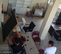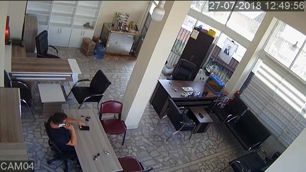 Trajikomik anlar ise saniye saniye işyerinin güvenlik kamerasına yansıdı.