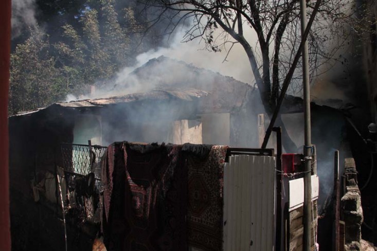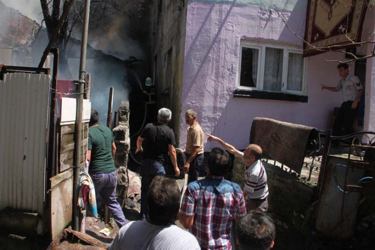 alevler yükselmeye başladı. Ahşap olan evi kısa sürede saran alevler yan