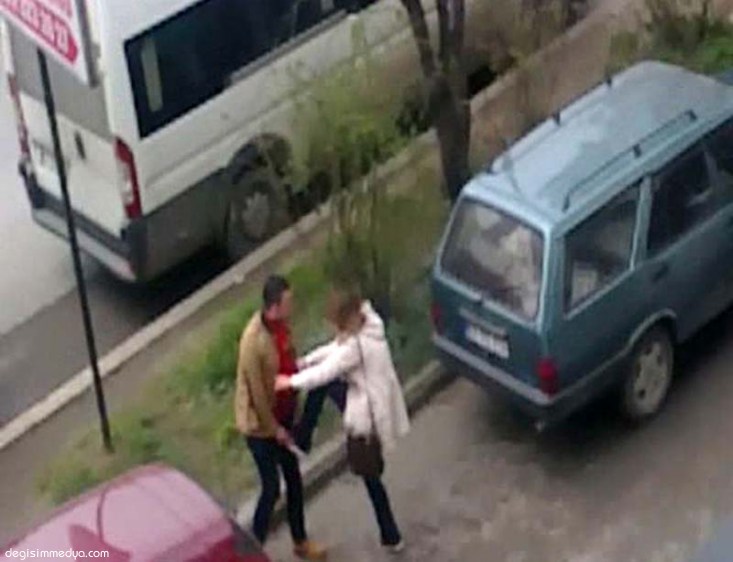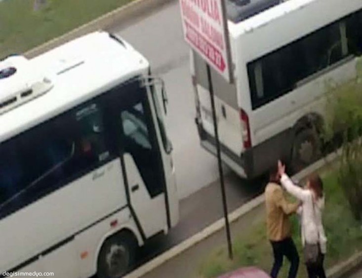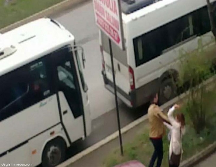 BİR GENÇ KIZLA ERKEK, CADDE ORTASINDA TEKME TOKAT KAVGA ETTİ