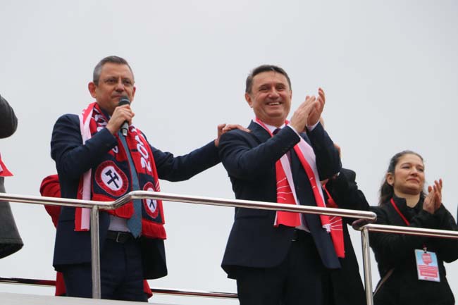 Zonguldak’tan önce Ankara’da Etimesgut’ta Mansur Yavaş ile görüştüklerini söyleyen Özel, “Etimesgut'ta otobüsün üstünde Mansur başkanla birlikteydik. Ona dedim Zonguldak'a gidiyorum. Tahsin Başkan'ın yanına ama senden de bir söz istiyorum. Eğe dedi, Zonguldak, Tahsin başkanı seçerse Mansur Yavaş'ın bir eli Tahsin Erdem'in bir omzunda. Şimdi buradan İstanbul'a gidiyorum. Ekrem Başkan beni kırmaz, sizi sever, sizin hemşeriniz ve Ekrem Başkan da İstanbul'da, Taksim Erdem'i seçtiğiniz durumda, onun da bir eli bu diğer omzunda. Ben partinin genel başkanı olarak Soma'nın Manisa'nın bir evlatları olarak Ecevit'in kentine kara elmas diyarına sözüm söz olsun. Siz de emeğin, halkın partisine, halkçı bir belediye başkanına, Tahsin Başkan'a emanet eden Ankara Büyükşehir'de İstanbul Büyükşehir'de Zonguldak'ın ayağa kalkması için ne gerekiyorsa onu yapacak” dedi.