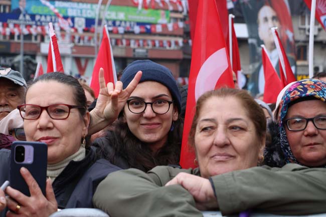 31 Mart akşamı Zonguldak’ın sonuçlarını da yakından takip edeceğini söyleyen Özel, “Benim de otuz bir Mart akşamı, bir gözüm Türkiye'deki büyük şehirlerde. Bir gözümde emeğin başkenti Zonguldak'ta olacak. Ve bu seçimde şöyle düşünenler olabilir. Geçtiğimiz seçim AK Parti ile MHP bayrağı bir araya geldiler. Cumhuriyet Halk Partisi'yle, İYİ Parti'de birlikteydi, ayrı düştüler diye düşünenler olabilir. Evet, Cumhur İttifakı bir yanda duruyor. Korkuyu örgütlüyorlar. Tehdit ediyorlar. Hatay'a gidip şantaj yapıyorlar. Oy vermedin halin ortada. Vermezsen perişan ol diyorlar. Ordu'ya geliyorlar. Bize oy yoksa doğalgaz yok diyorlar. Sakarya'ya gidiyorlar. Oy vermeyene hizmet yok diyorlar. Oysa Türkiye'nin en iyi hizmet alan şehirlerini CHP yönetiyor. Yıllardır iktidarda değiliz. Yüz öğrencinin seksen beşi CHP'li belediyelerin olduğu ilçelerdeki üniversiteleri tercih ediyor. Herkes gezmeye tatile geliyor göçü CHP’li belediyeler alıyor. Ama korkuyu örgütleyecek ya. Korkutarak, korku siyaseti yapacak ya. Tehdit ve şantaj yapacak ya. Böyle konuşuyor. Ama biz umudu örgütlüyoruz. Biz sevgiyi örgütlüyoruz. Biz Türkiye'nin aydınlık yarınlarını örgütlüyoruz. Biz Türkiye'nin geleceğinin geleceğini örgütlüyoruz. Bir tarafta Adalet ve Kalkınma Partisi yanında MHP. Her geçen gün birbirine benziyorlar. Her geçen gün. Yenge gökyüzündeki koyu bir yağmur bulutları o ittifakın rengidir. Kentlerin ve ülkenin üstüne Karabulut gibi çöktüler. Bir de yanlarına bir de yanlarına domuz bağcıların, Hizbullahçıların avukatlarını, eski sanıklarını aldılar. Kadınları sahiplendireceğiz diyenleri aldılar. Mikroba neden hastalık yapıyorsun diye sorulmaz. Bunların niyeti belli. Bunlar İstanbul Sözleşmesi'ne karşı bunlar medeni hukuka karşı bunlar kadına kimlik veren Türkiye Cumhuriyeti'ni, Türkiye Cumhuriyeti yapan Karşı o yüzden onlarla birlikteler. Oysa biz belki bu seçimde ittifak yapmadık gibi görünüyor ama çok daha büyük bir ittifakın içindeyiz. Onların karşısında bizim ittifakımız onlar Cumhur İttifakı'ysa Biz Türkiye ittifakıyız” diye sözlerini tamamladı.