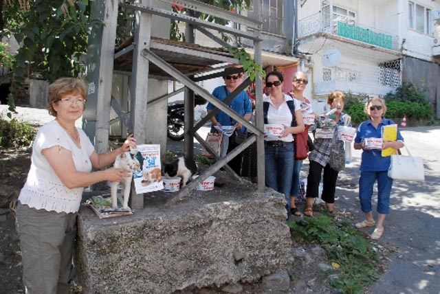 Gönülden Hayvan Sevenler Derneği üyeleri, sokak hayvanları için Haytap ve Bakanlık tarafından başlatılan kampanya kapsamında mahallelerde su ve yemek kabı dağıtımı gerçekleştirdi.