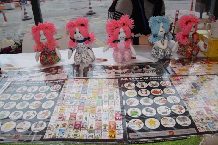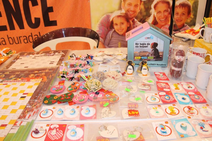 Standımızda lösemili çocuklarımızın annelerinin yapmış olduğu el emeği birbirinden farklı ve şirin bebeklerimiz, yastıklarımız, çantalarımızın yanı sıra kupalarımız, kitap ayraçlarımız, taraftar takvimlerimiz ve bebeklerimizx, mini rozetlerimizin yanı sıra birbirinden farklı çeşitli ürünlerimiz yer alıyor. Bu ürünlerimizden elde edilen gelir ile LÖSEV Vakfımıza destek olacağız. Biz kocaman bir aileyiz. Birbirine sımsıkı sarılmış 5 milyon kişiyiz...LÖSEV'e destek verin, çocuklarımız gülümsesin!.." dedi