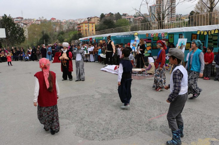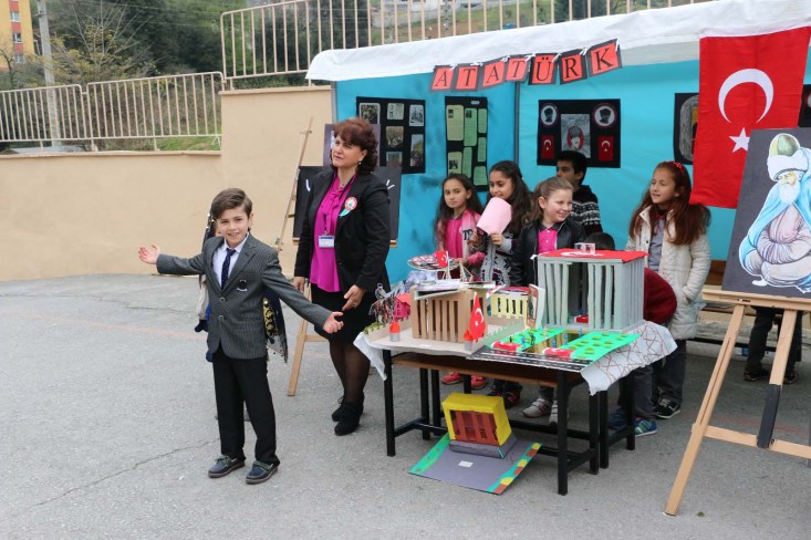 Proje hakkında katılımcılara bilgi veren okul müdür yardımcısı Saliha Karakaya ise Mustafa Kemal Atatürk'ün ' Türk çocuğu Ata'larını tanıdıkça daha büyük işler yapmak için kendinde kuvvet bulacaktır' sözünü hatırlatarak başladığı konuşmasında "2012 yılından itibaren Milli Eğitim Bakanlığı'nın düzenlemiş olduğu 'Eğitim öğretimde yenilikçilik ödülleri' kapsamında hazırlamış olduğumuz 'Bir varmış, Bir yokmuş' adlı projemizin uygulama aşamasına hepiniz hoş geldiniz. Eğitim öğretim de yenilikçilik ödülleri yenilikçi uygulamaları eğitim sistemine kazandırmayı, öğretmen ve öğrencilerimize daha iyi eğitim imkanını sunmayı, öğrenci ve öğretmenlerimize uygulamaları hayata geçirerek eğitim ortamlarımızın kalitesini arttırmayı hedeflemektedir. Bu doğrultuda 'Bir varmış, bir yokmuş' projesi ile yenilikçi uygulamaları kullanarak öğrencilerin kültürel mirası olan Türk büyükleri ve kahramanlarını tanımalarını bu kişilerin iyiyi güzeli ve ahlaki öğretilerini benimsemeleri ve kültürel mirasın korunması ve geliştirilmesinde sorumluluk sahibi olmaları amaçlanmaktadır. 'Türk çocuğu Ata'larını tanıdıkça daha büyük işler yapmak için kendinde kuvvet bulacaktır'. Mustafa Kemal Atatürk'ün bu sözünden yola çıkarak projemizin ilk aşamasında gerek masal kahramanı gerekse tarihte iz bırakmış büyüklerimizden 8 kişi belirledik. Öğrencilerimiz kişilerle ilgili panolar ve çalışmalar hazırladı. Kültürümüzde eseleri ,sözleri, yaptıklarıyla, davranışlarıyla ile iz bırakmış, toplumumuz için bir değer oluşturmuş kişilerin sadece kitaptan okuyarak ezberleme yöntemi ile değil, canlandırma, analiz ve senaryo ile öğretim, yaratıcı drama, tartışma sözlü ve görsel anlatım ile yaşayarak öğrenme yöntemlerini kullanarak anne ve babaları ile öğrenmeleri ve öğrendiklerini akranlarına aktarabilmeleri, bu çalışmanın özgünlüğünü yansıtmaktadır" dedi.