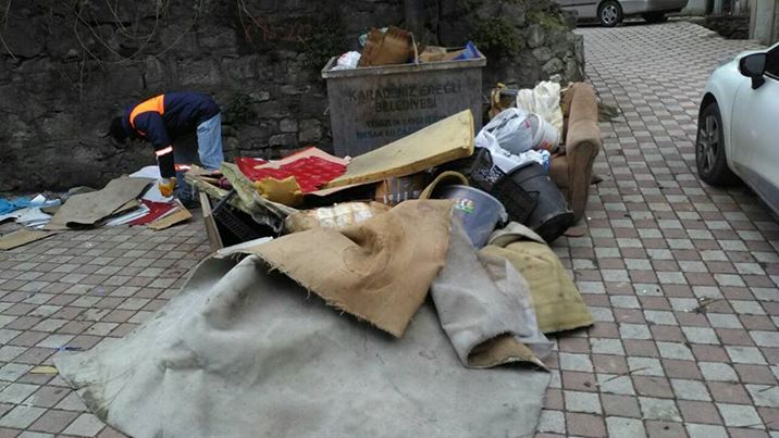 Zonguldak'ın Ereğli ilçesinde çöp konteynırlarının önüne çekilen araçlar ve çöp konteynırı yerine çevreye atılan çöpler temizlik işleri müdürlüğü ekiplerinin çalışmasına mani oluyor.